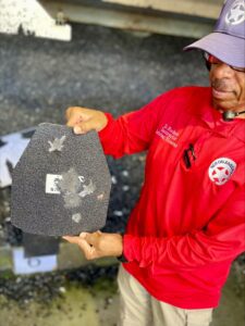 Thanks to the support of the Richard C. Colton, Jr., Foundation, the NOPJF team tested the abilities of the Armored Republic A1 plate at the NOPD range in August for possible field use. Utilizing 6 escalating ammunition calibers, the A1 plate passed every test.